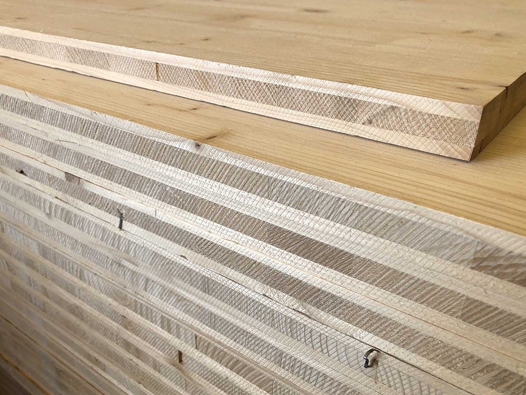 - pevná deska s tvarovou stabilitou (nedeformuje se jako rostlé dřevo),