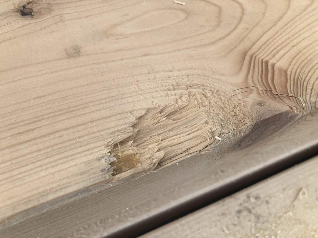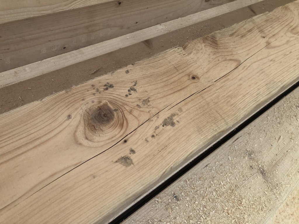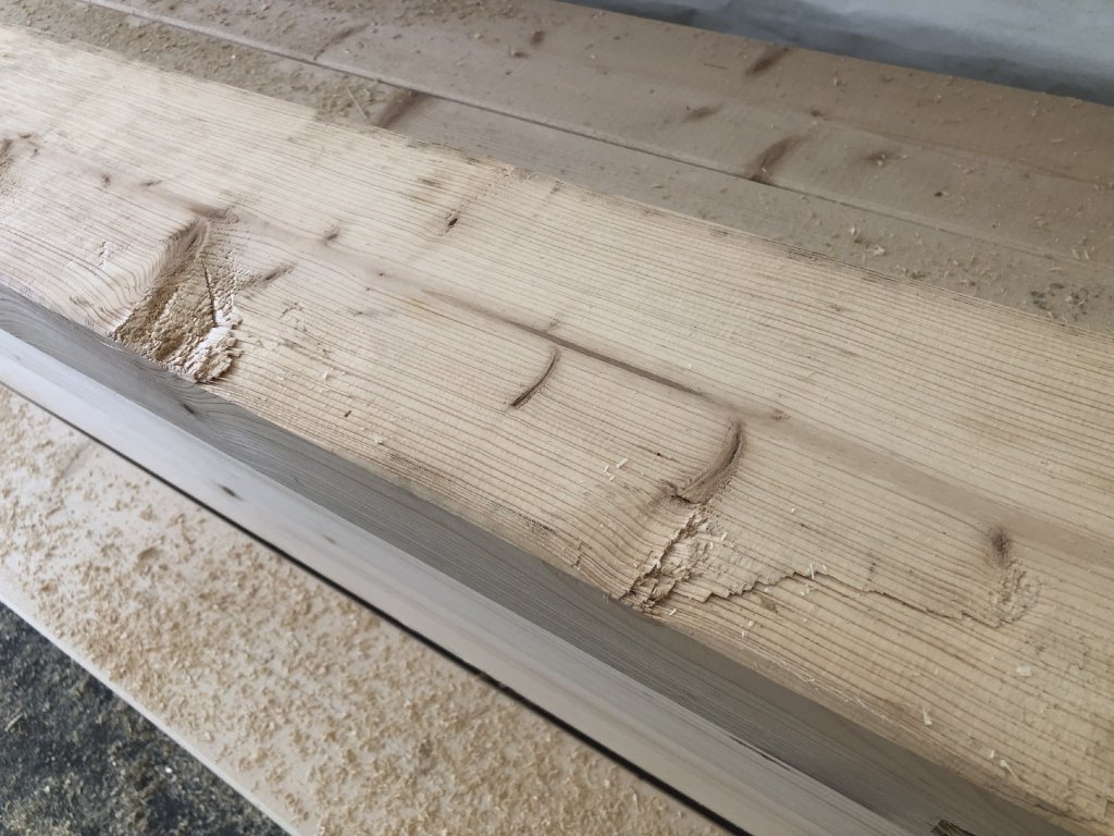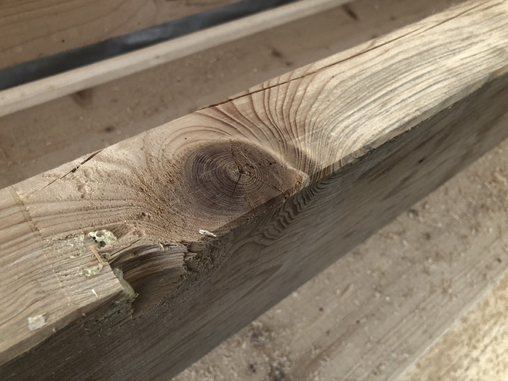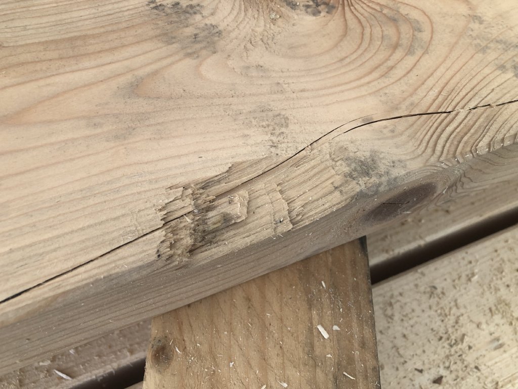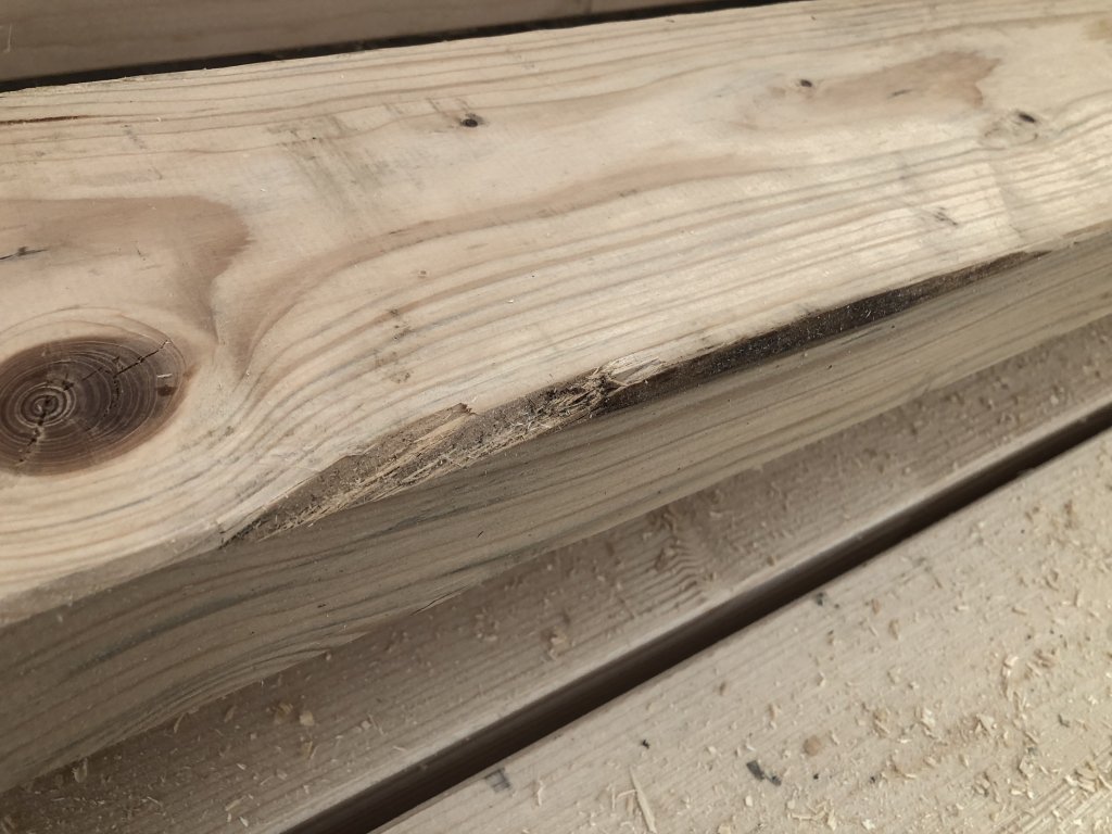 Hranol má popraskání a poškození (viz foto).