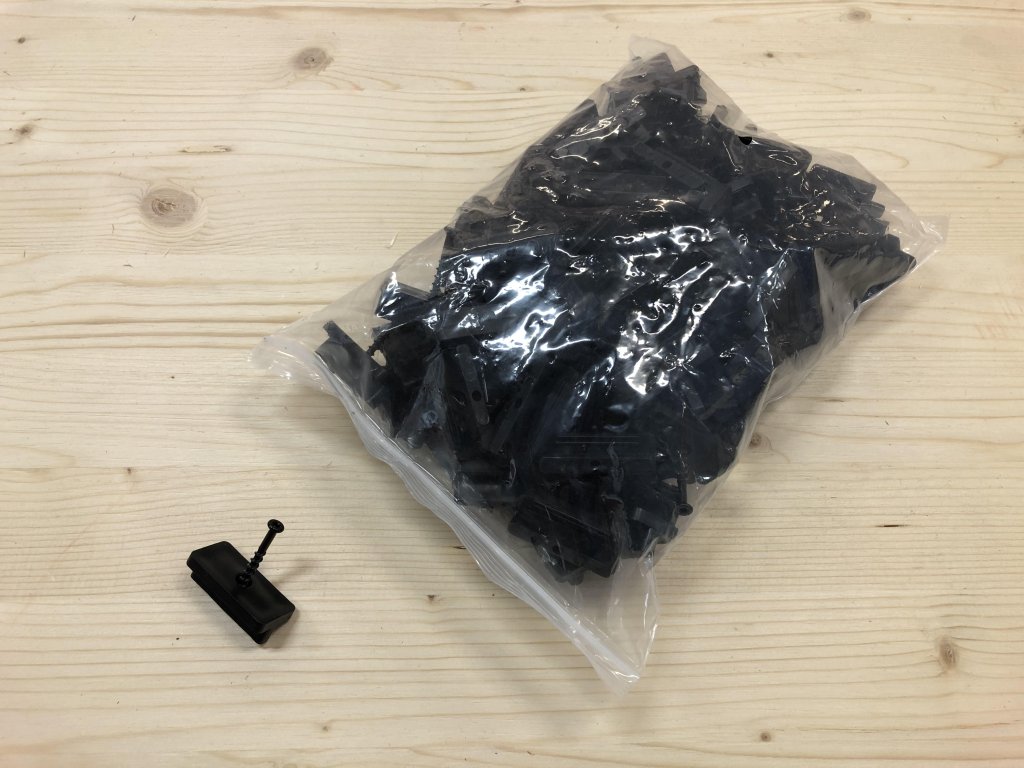 Montážní klipy pro terasová prkna WPC spojovací (vč. vrutů-TX), plast, černé (100ks)