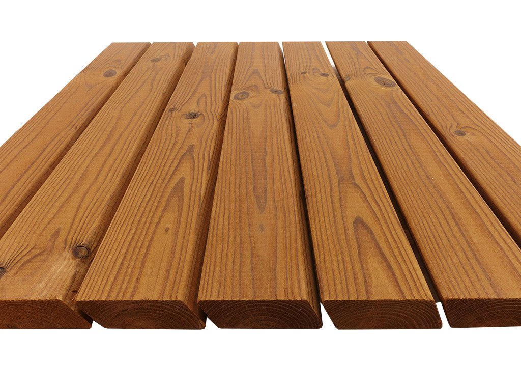 Upozornění: foto produktu nemusí přesně zachycovat skutečné barevné odstíny dřeva. Specifickou vlastností dřeva po tepelné úpravě Thermowood je, že jeho barevný odstín se může jevit různě v závislosti na typu osvětlení, úhlu pohledu a intenzitě světla. Je to přirozená vlastnost materiálu Thermowood a není považována za vadu.