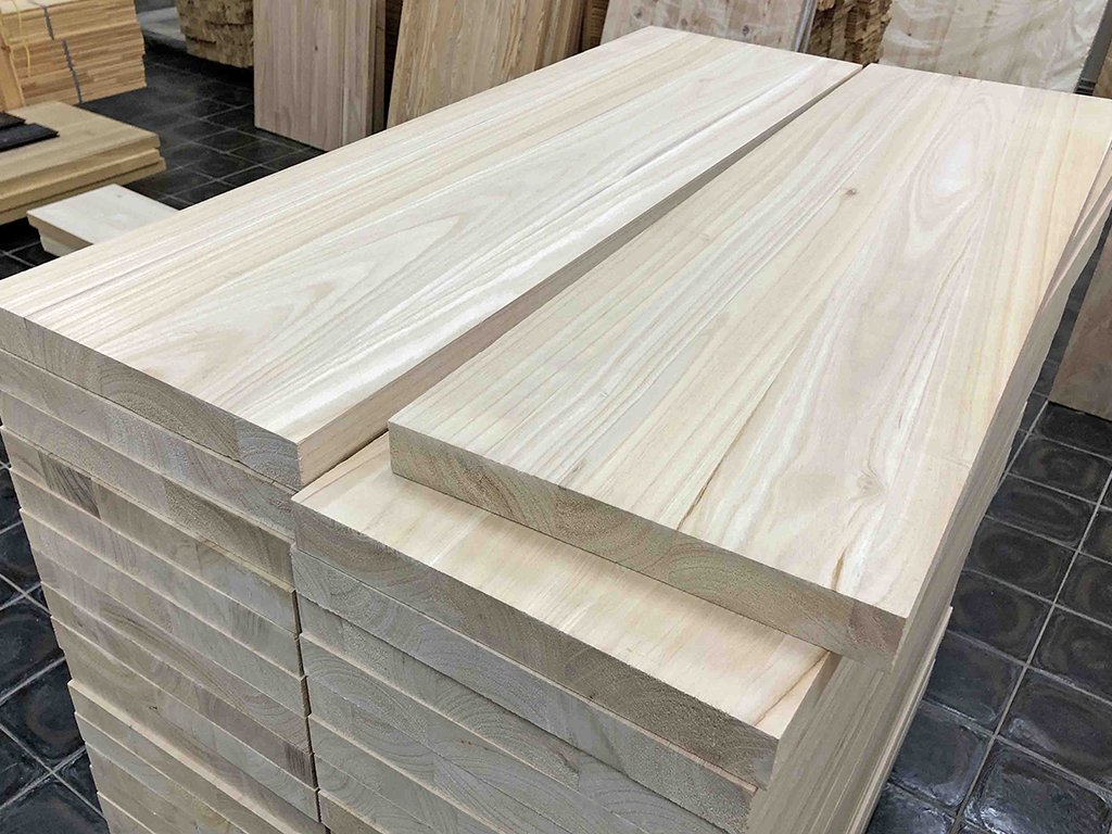 Tyto spárovky vyrobené z přírodního dřeva pavlovnie jsou neošetřené, jemně broušené desky skládající se z podélných lepených masivních lamel. Desky jsou unikátní tím, že nejsou lepeny pouze z průběžných lamel, ale také z různých kusů dřeva k sobě, což umožňuje efektivnější využití materiálu. Díky této konstrukci jsou odolnější a stabilnější než samotné dřevo. Jsou využitelné nejen v nábytkářství pro konstrukce nábytku, ale i v jiných oborech.