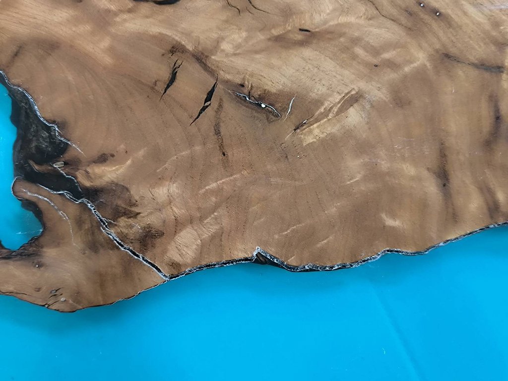 Stolní deska je zařazena do výprodeje z důvodu POPRASKÁNÍ a výrobních vad (v pryskyřici jsou viditelně zalité fragmenty, které nelze odstranit) (viz foto).