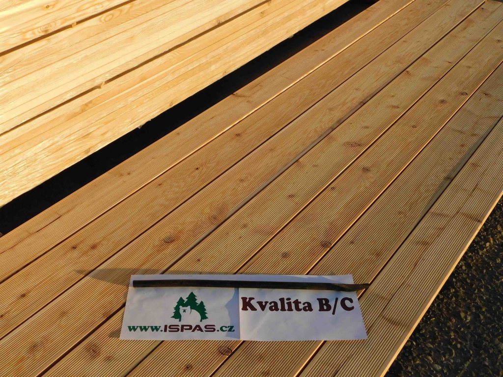 Terasová Prkna Sibiřký Modřín - BC. Skvělá volba, pokud chcete ušetřit a přitom mít terasu z kvalitního dřeva Sibiřského Modřínu. V čem se liší BC od kvality AB? Hlavně asi v tom, že v kvalitě BC se dopouštějí suky o větším průměru, mohou se vyskytnout drobné tmavé suky a suky s drobnými prasklinami. Vypadlé suky se nedopouštějí! Nicméně, tyto vady nejsou na větší ploše ani vidět, jak se můžete přesvědčit na fotografii u produktu. Nebojíme se říci, že tato prkna, která prodáváme jako kvalitu BC by jiní prodejci směle prodávali jako AB. Také je nutné podotnkout, že kvalita dřeva je na všechny třídy stejná. Všechno je vyrobeno z krásných stromů, pocházejících z Ruské Tajgy v Krasnojarském Kraji, ať už jde o kvalitu A, AB, BC. Nicméně, dřevo je přírodní produkt a mnozí zastávají názor, že suky nejsou nedostatkem a naopak přidávají celkovému vzhledu na kráse.