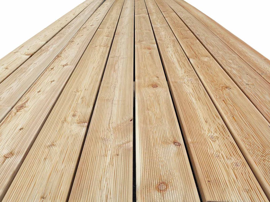 Terasová prkna ze sibiřského modřínu se vyznačují vysokou odolností. Je to dáno tím, že dřevo roste velmi pomalu v chladném klimatu a extrémních podmínkách. Dřevo ze sibiřského modřínu proto dobře odolává změnám počasí a není tak citlivé na nárazy nebo škrábance jako jiná dřeva. Pochází přímo ze srdce Sibiře - z Krasnojarského kraje. Odtud je ten opravdový sibiřský modřín. Prkna jsou nadprůměrně těžká, jelikož mají vysokou hustotu a tím pádem jsou i velmi pevná a dlouho vydrží. S Evropským modřínem se to samozřejmě nedá srovnat. Sibiřský modřín se také cení z toho důvodu, že je svým způsobem "přírodně naimpregnován". Má totiž velký obsahu pryskyřice, která nám sice nádherně voní, ale dřevokazný hmyz a plíseň tím odpuzuje.