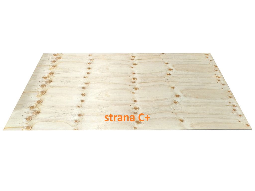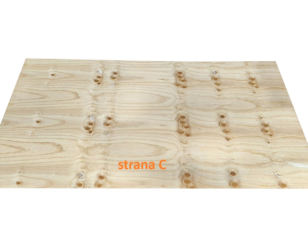 Tyto překližky mají jednu stranu kvality C+ a druhou stranu kvality C (objevují se kytovaná místa).