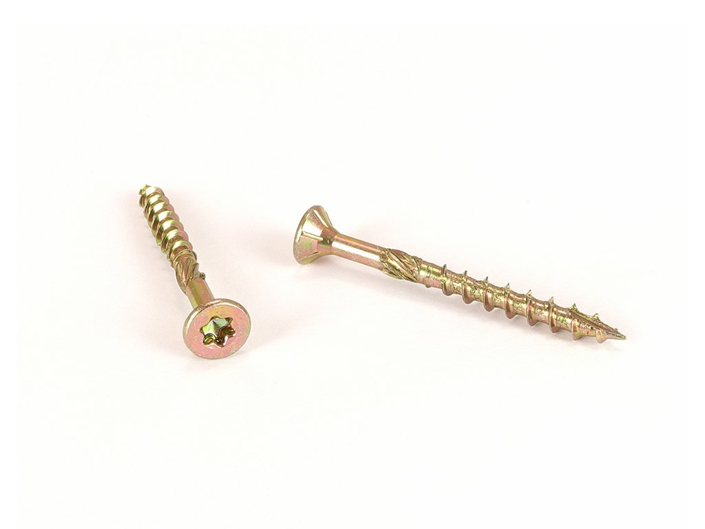 Vruty jsou vyrobeny z kvalitní uhlíkové oceli, která je povrchově chráněna galvanickým žlutým zinkem (ZZ). Tato úprava zajišťuje dlouhou životnost, odolnost proti korozi a elegantní zlatavý vzhled. Zápustná hlava se drážkou Torx 20 (TX20) zaručuje bezpečný přenos síly, bez prokluzů a opotřebení bitů, a umožňuje precizní zapuštění do povrchu materiálu.