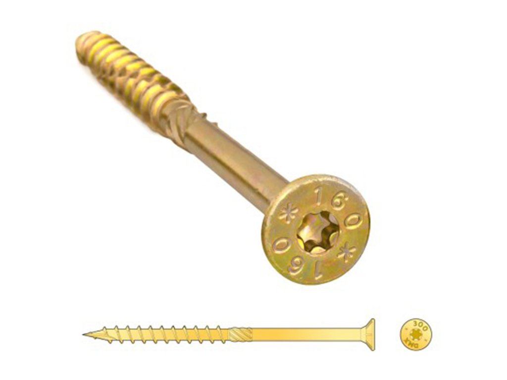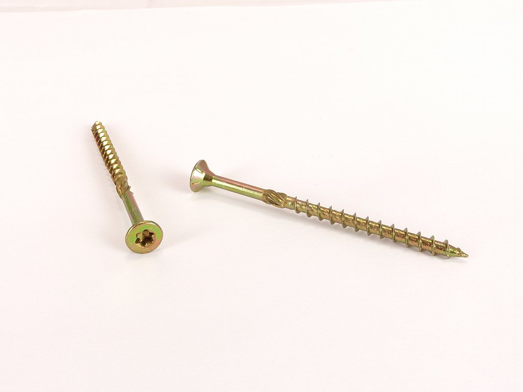 Vruty jsou vyrobeny z kvalitní uhlíkové oceli, která je povrchově chráněna galvanickým žlutým zinkem (ZZ). Tato úprava zajišťuje dlouhou životnost, odolnost proti korozi a elegantní zlatavý vzhled. Zápustná hlava se drážkou Torx 20 (TX20) zaručuje bezpečný přenos síly, bez prokluzů a opotřebení bitů, a umožňuje precizní zapuštění do povrchu materiálu.