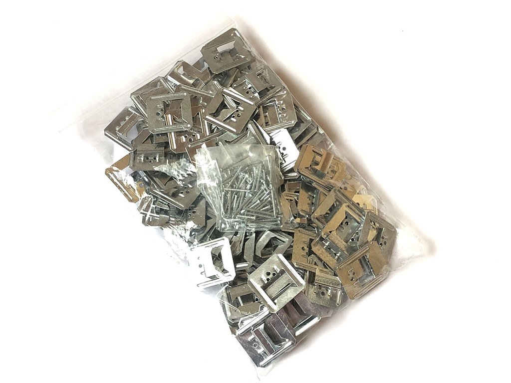 Železná úchytka (klip, sponka) na palubky ZESÍLENÁ se hodí jako skrytý prvek pro upevnění dřevěných palubek a PVC panelů. Oproti klasické úchytce je silnější (má větší sílu materiálu) a je celkově větší. Vydrží mnohem vyšší zatížení a díky čtyřem zoubkům (běžná úchytka má jen dva) umožňuje těsněji a spolehlivěji držet desku.
